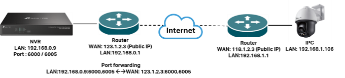 İki yapılandırma senaryosu vardır: birincisi NVR’nin genel bir IP adresine sahip olduğu senaryo, diğeri ise özel bir IP adresinin arkasında olduğu senaryo.