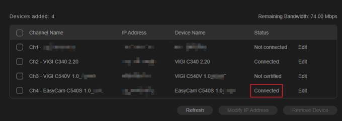 Uzaktan IPC ekleme işlemini tamamlamak için lütfen doğru kullanıcı adı ve parolayı tekrar girin. Ardından, eklenen cihazlar listesinde IPC’nin durumu ‘bağlandı’ olarak değişir.