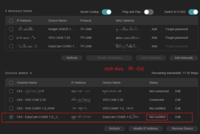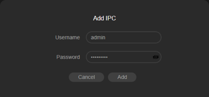 3) IPC’yi çıkardıktan sonra, eğer ilk kez eklemiyorsanız, NVR arayüzünde uzak IPC’yi tarayın. Ardından ” Ekle “ye tıklayın ve IPC’nin kullanıcı adı ve şifresini girin.