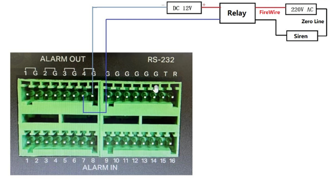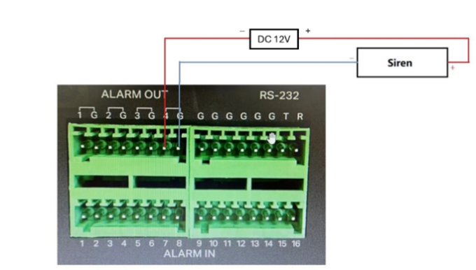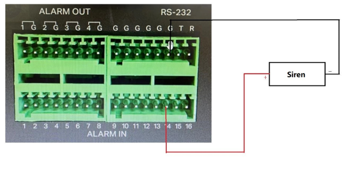 2. NVR alarm çıkış portu (ALARM OUT) pozitif kutbu (işaretleme 1~4) ve karşılık gelen toprak terminali (G) birebir şekilde bağlanmalı ve karıştırılmamalıdır.