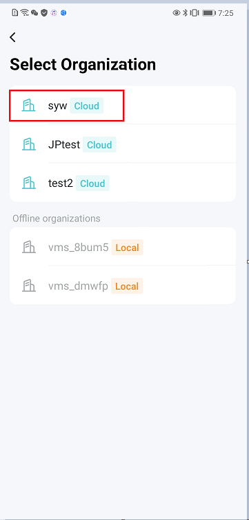 Adım 1. TP-Link ID’nizle VIGI uygulamasına giriş yapın. Bir kuruluş seçin ve VIGI cihazlarını görüntülemek için bir site seçin.