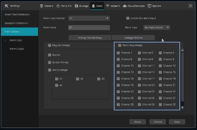 Kayıt Bağlantısı için, herhangi bir kanala bağlanmayı da seçebiliriz, alarm tetiklendiğinde ilgili kanalın video kaydına başlamasına izin veririz.