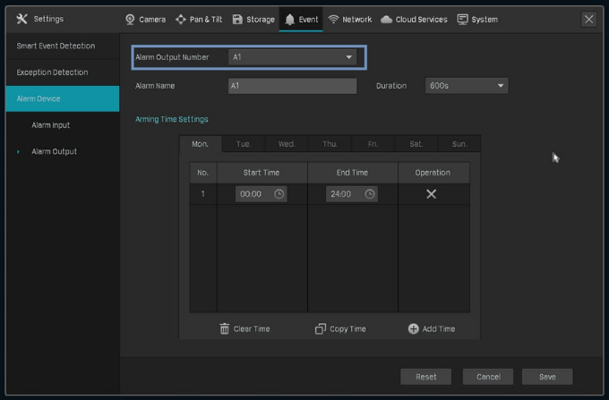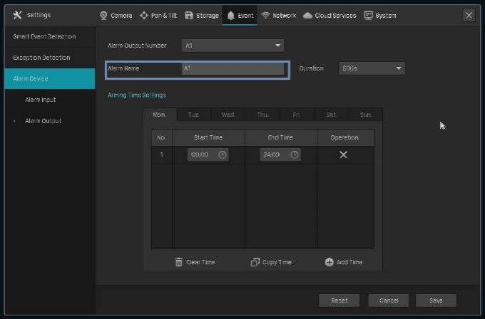 Adım 1. Alarm Çıkış portunu A1’den A4’e kadar seçin, ayrıca port için Alarm Adını da değiştirebiliriz.