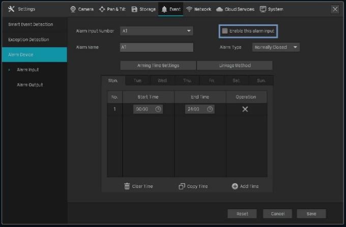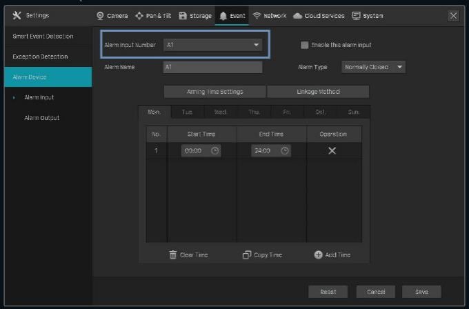 Adım 1. A1’den A16’ya kadar Alarm giriş portunu seçin, ayrıca port için Alarm Adını da değiştirebiliriz.