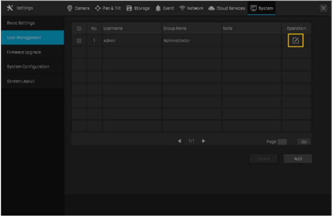 1. Adım: Canlı Görünüm ekranında sağ tıklayın, Ayarlar > Sistem > Kullanıcı Yönetimi’ne gidin, admin hesabını seçin ve