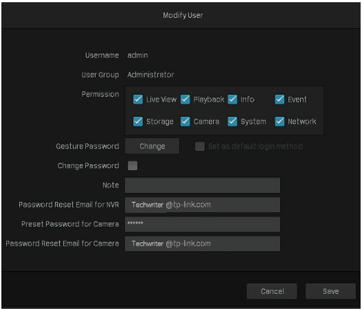2. Adım: Şifre Değiştir seçeneğini işaretleyin, eski şifrenizi ve yeni şifrenizi girin, Kaydet düğmesine tıklayın. Ayrıca NVR için Şifre Sıfırlama E-postası, Kamera için Ön Ayar Şifresi ve Kamera için Şifre Sıfırlama E-postası da buradan değiştirebilirsiniz. İşte bu kadar.